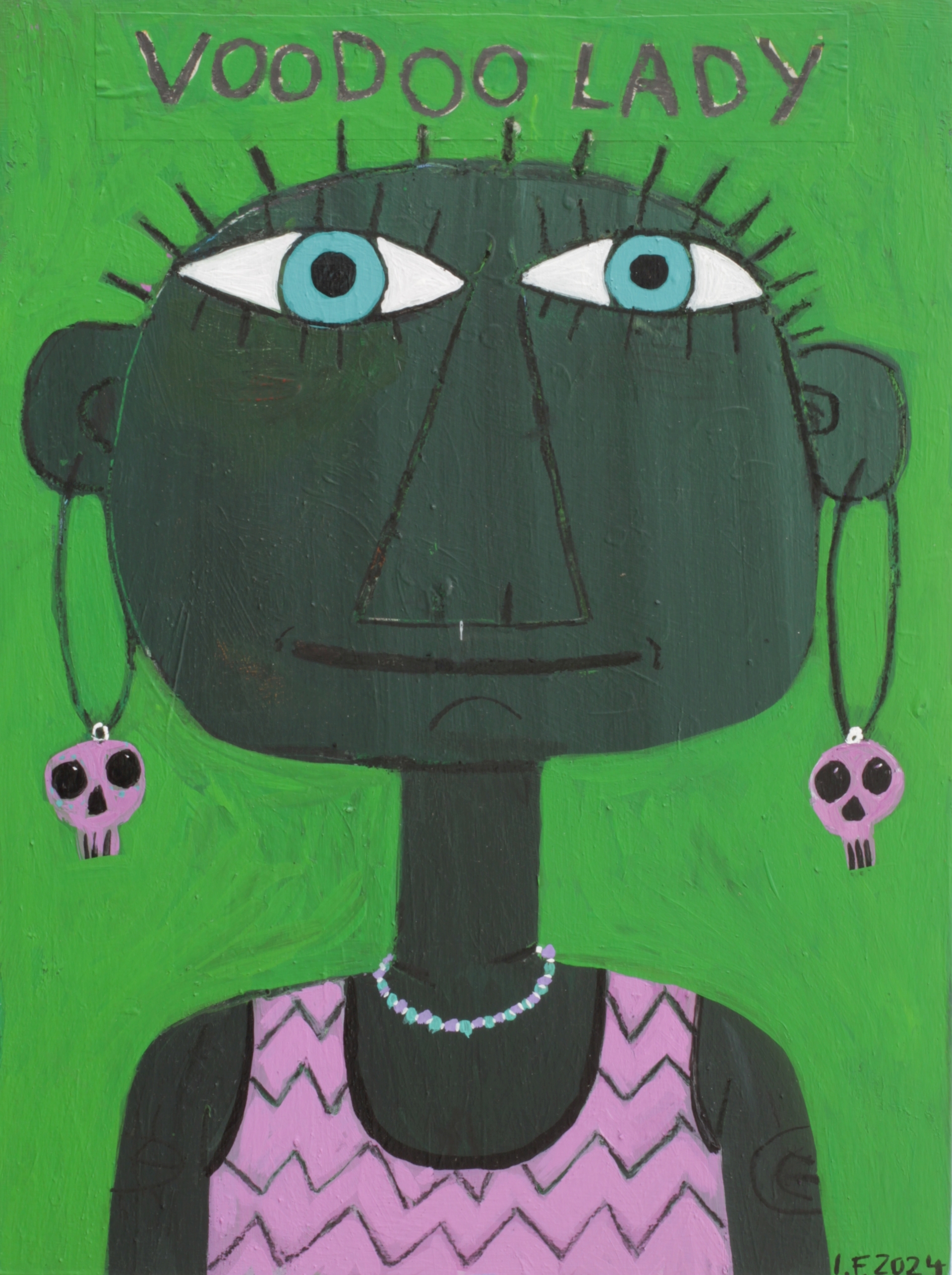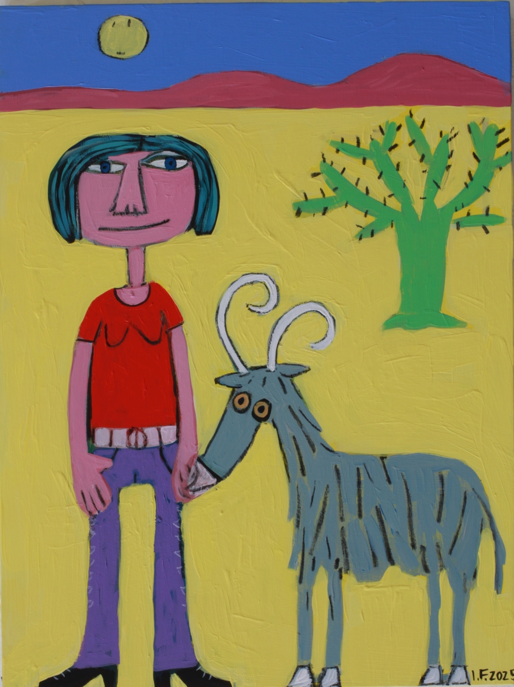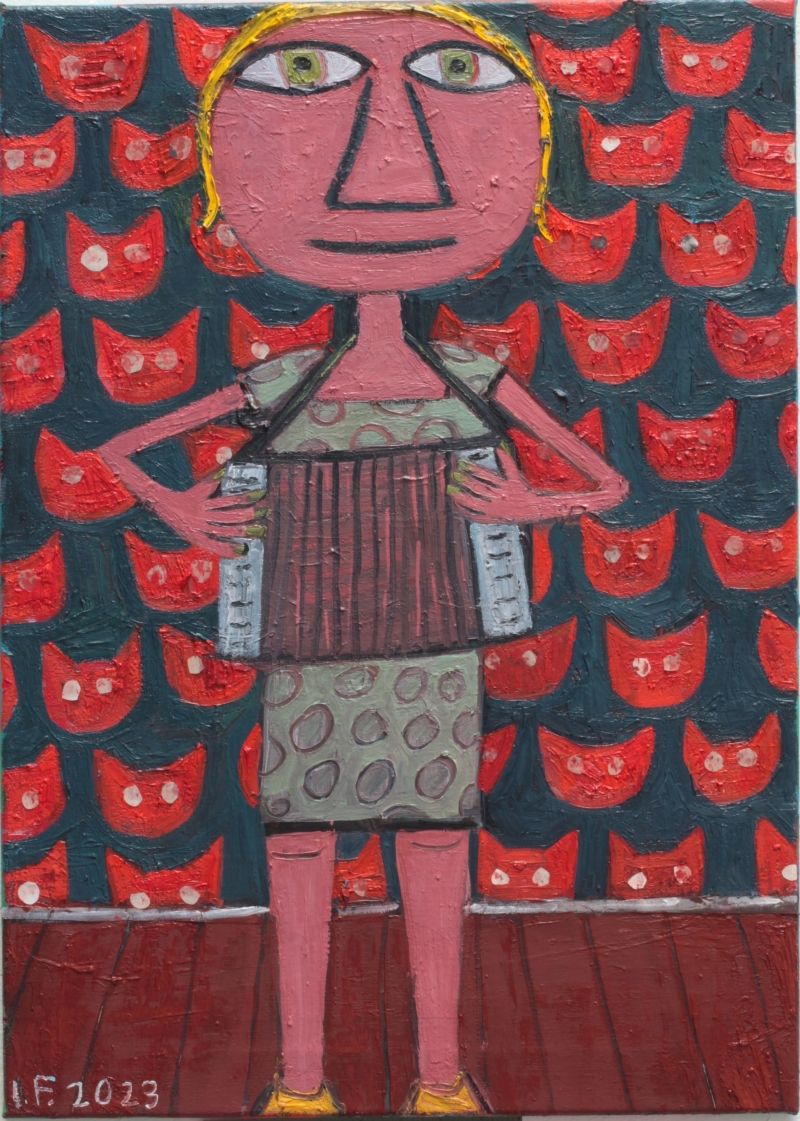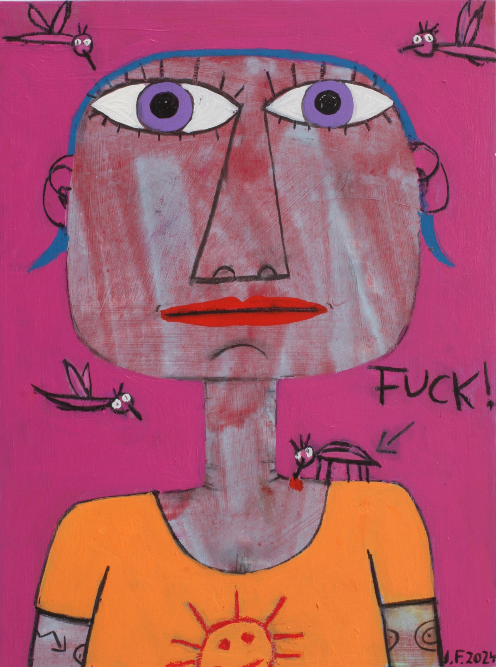 Sie malt vorwiegend Frauen, die uns aus dem Alltag gegriffene oder auf Reisen erlebte Geschichten erzählen.