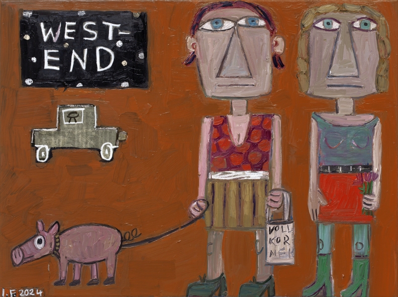 Ihre Bilder zeigen dem Betrachter eine fein differenzierte Malerei in leuchtenden Farben , oft mit einer gewissen Prise Humor.