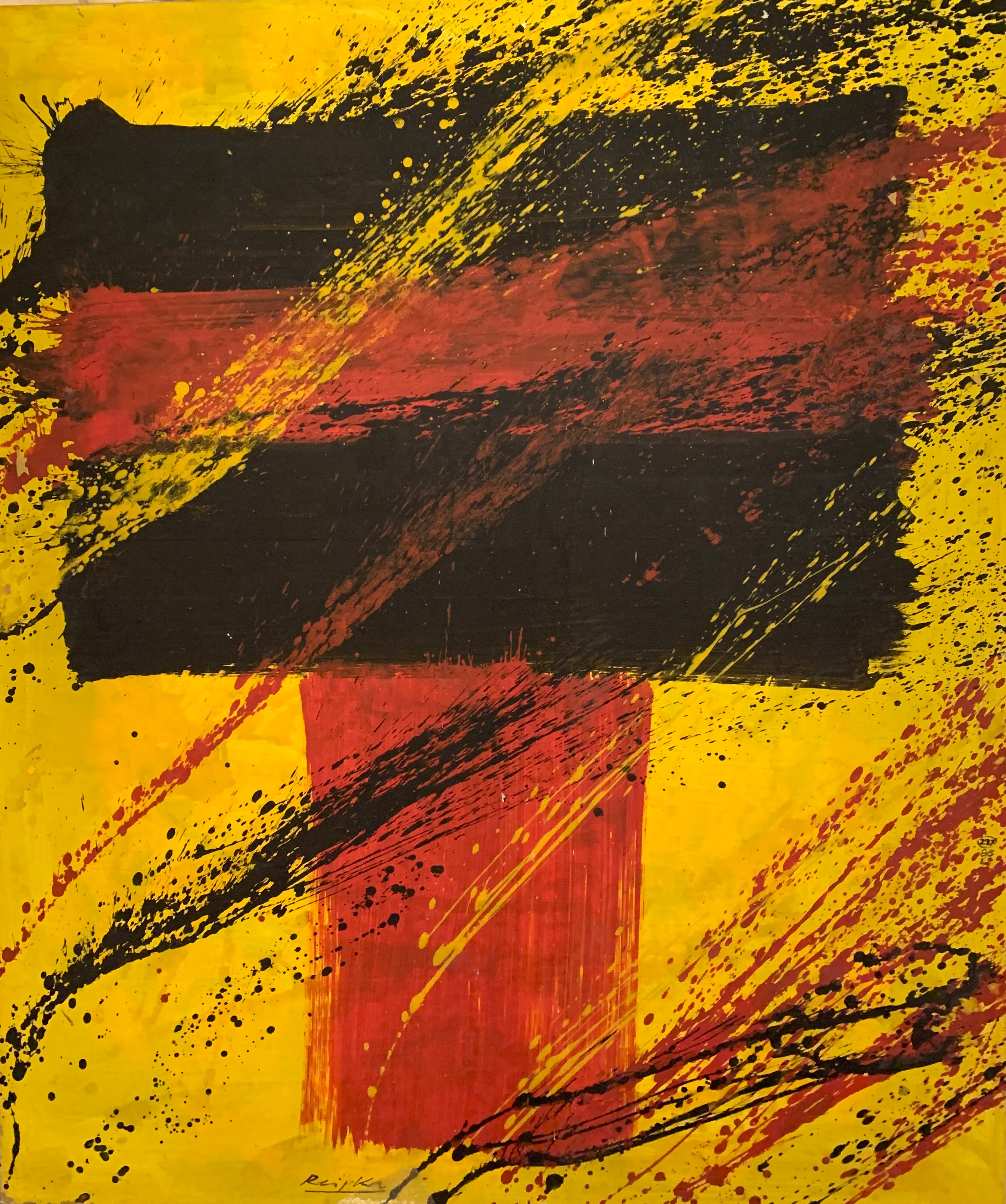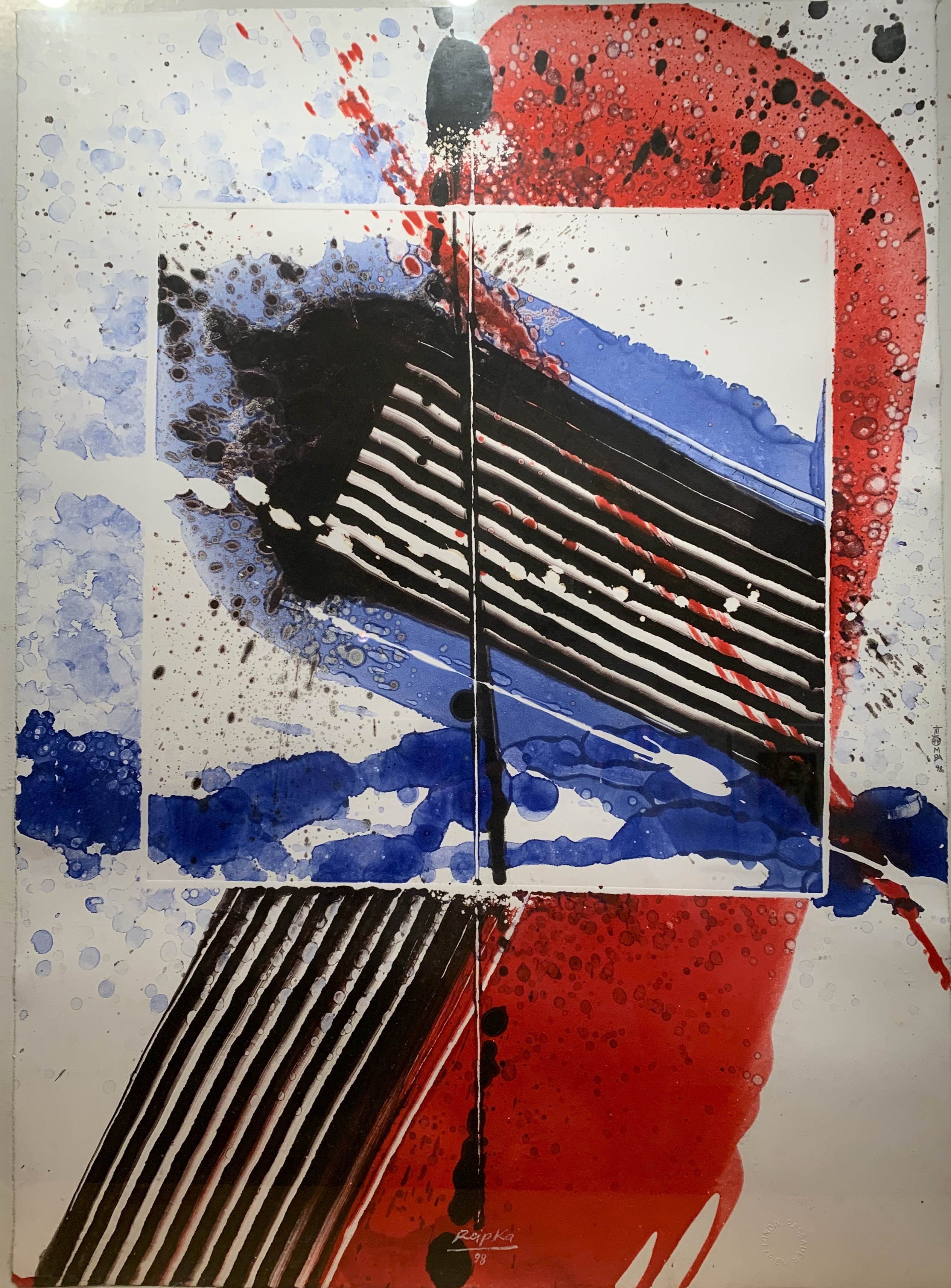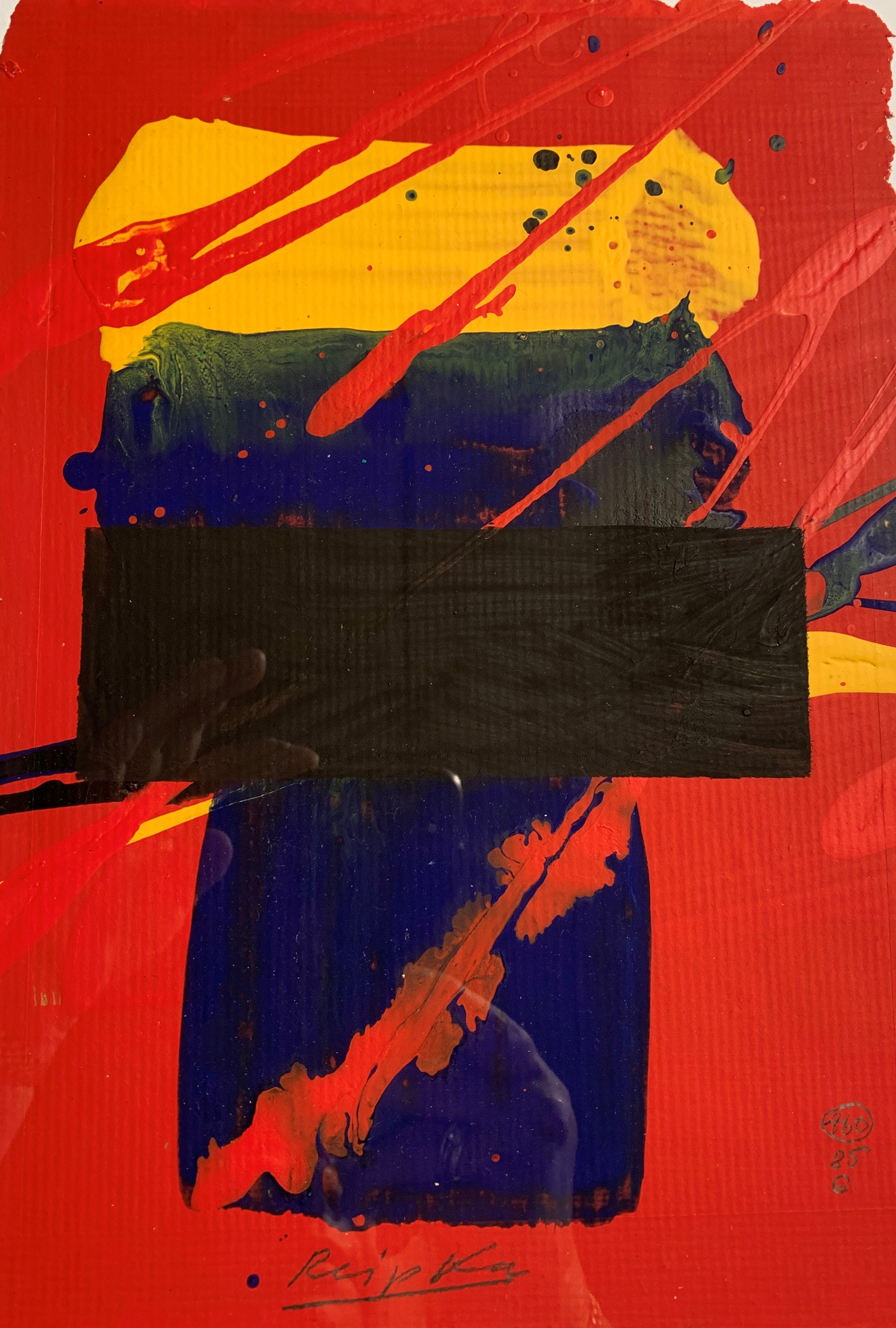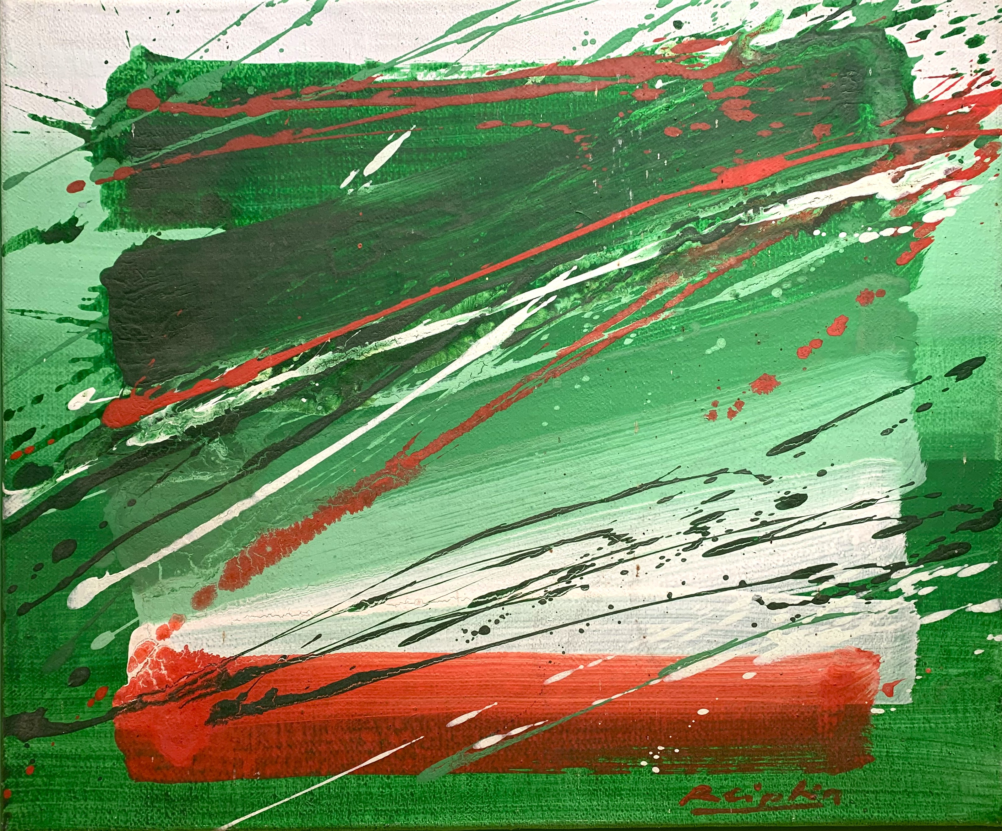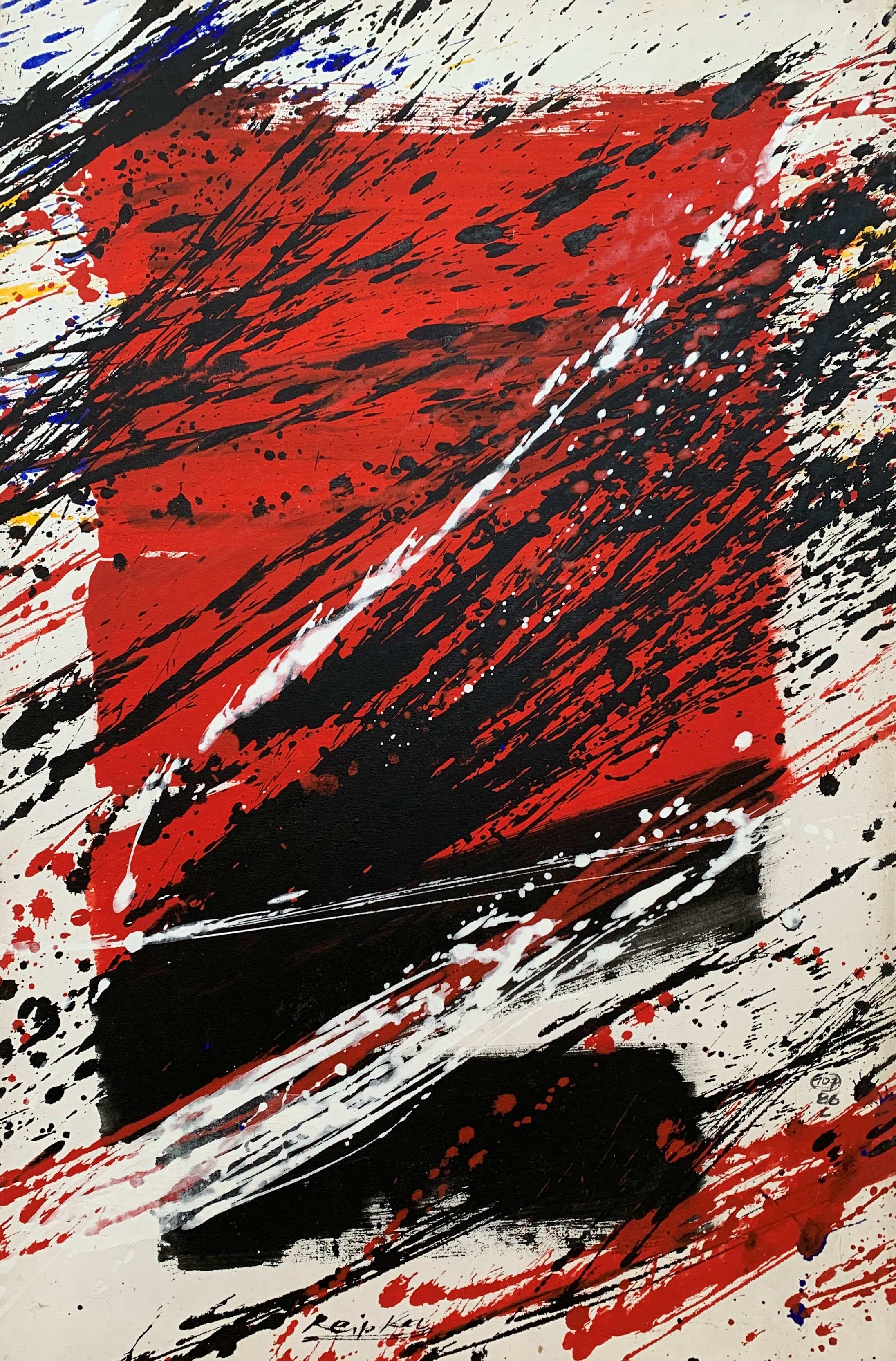 In seiner typischen Manier komponierte Reipka seine Bilder: Zunächst ließ er mit einem in Farbe getränkten Pinsel Tropfspuren in Form von Spritzern, Klecksen und Linien über den Malgrund auf die Vorderseite der Leinwand fallen. Mit Hilfe von kammartigen Schabern schaffte er zusätzliche Strukturen und Transparenzen. Diese Reihungen und Schichten waren, wie er selbst sagte, seine wichtigsten Prinzipien. Seine Bilder, Gouachen oder Glasmalerei leben von dieser Spannung der geometrischen Balken und der farblichen Präsenz.